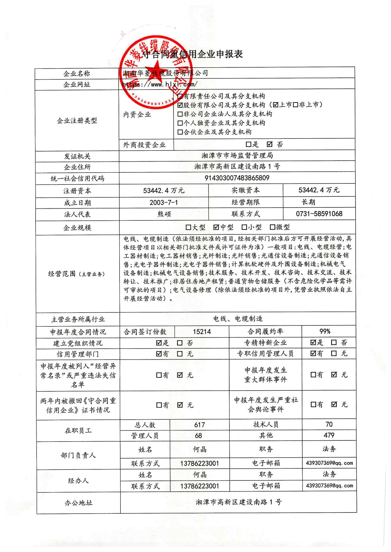 本企業(yè)根據《湘潭市守合同重信用企業(yè)申報規(guī)定》等編制 2024 年度企業(yè)信用報告書,并保證本報告書內容真實、準確、完整。