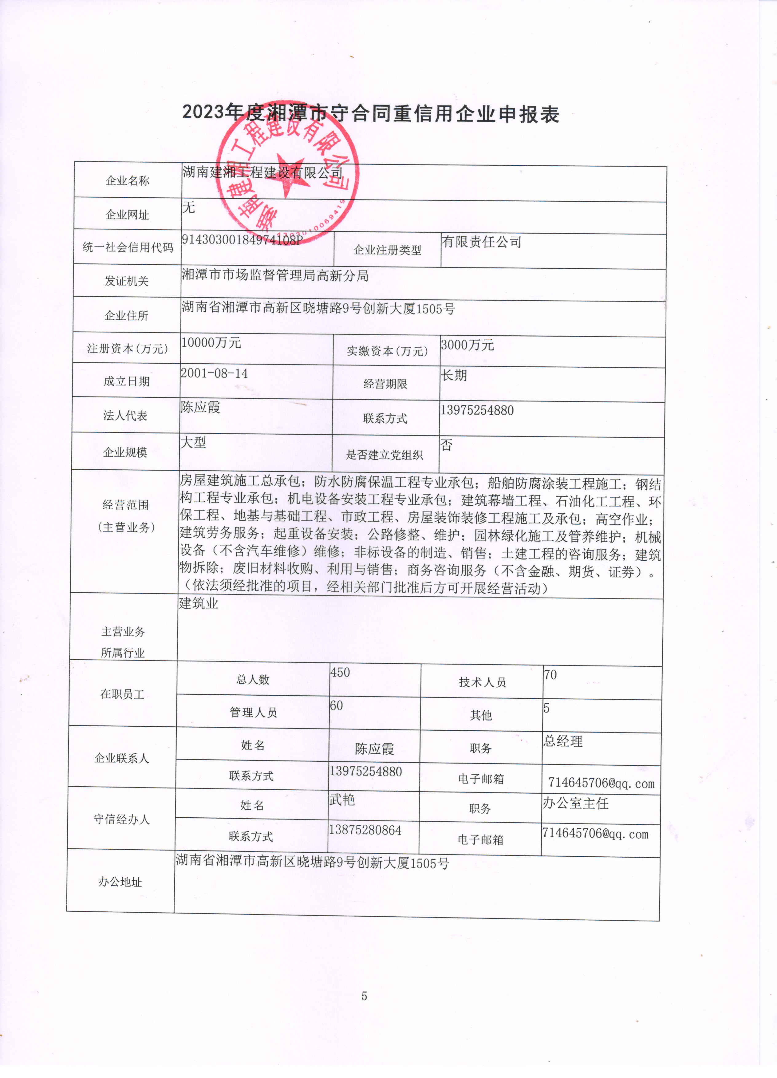 本企業(yè)根據(jù)《湘潭市守合同重信用企業(yè)申報規(guī)定》等編制 2023 年度企業(yè)信用報告書,并保證本報告書內(nèi)容真實、準(zhǔn)確、完整。