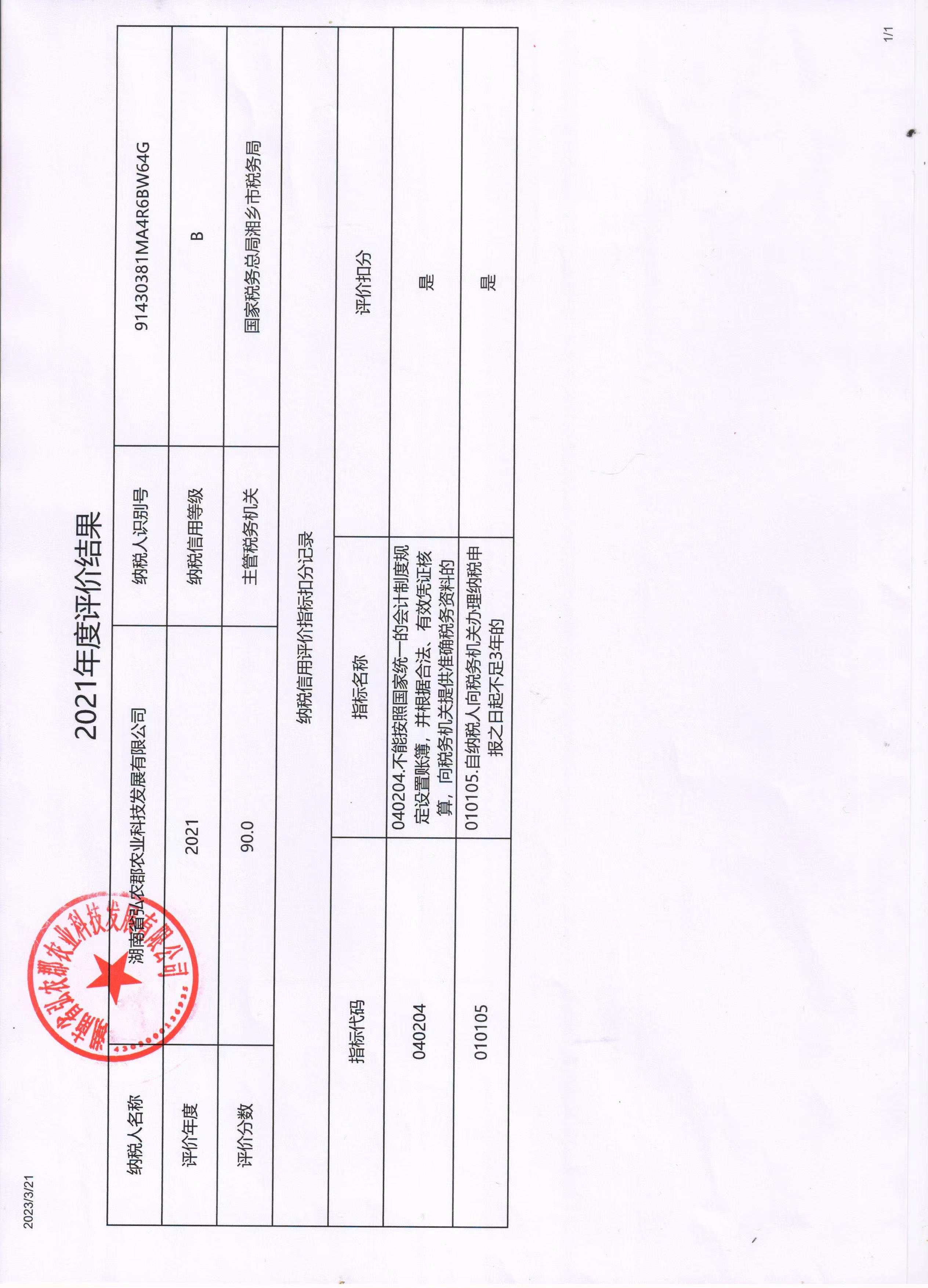 企業(yè)納稅信用等級報告: