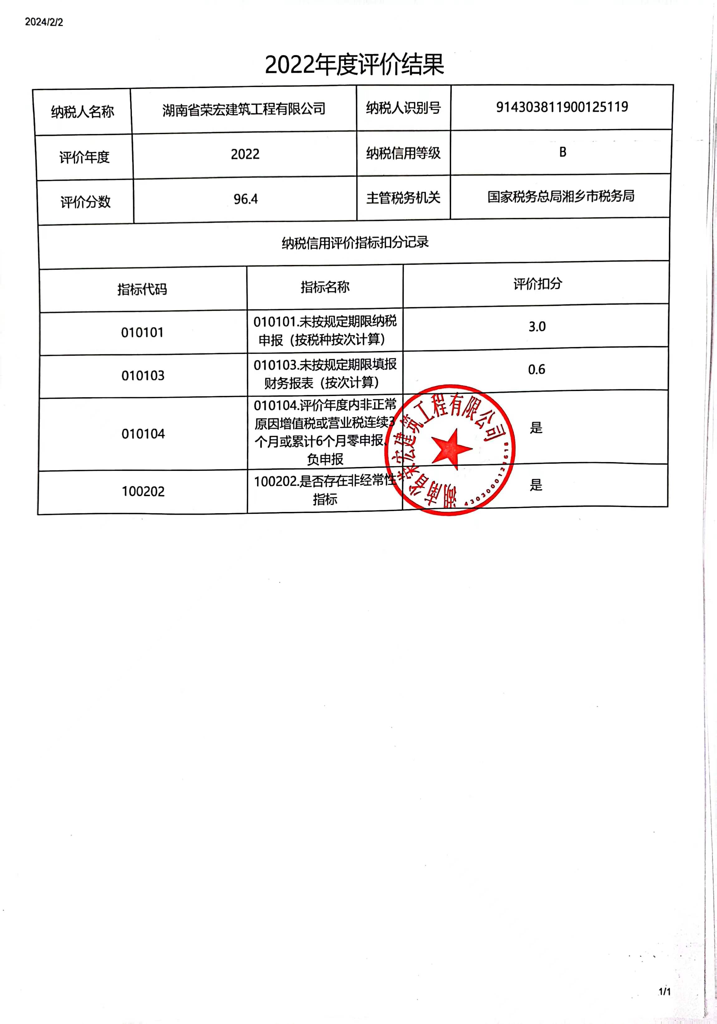 企業(yè)納稅信用等級報告: