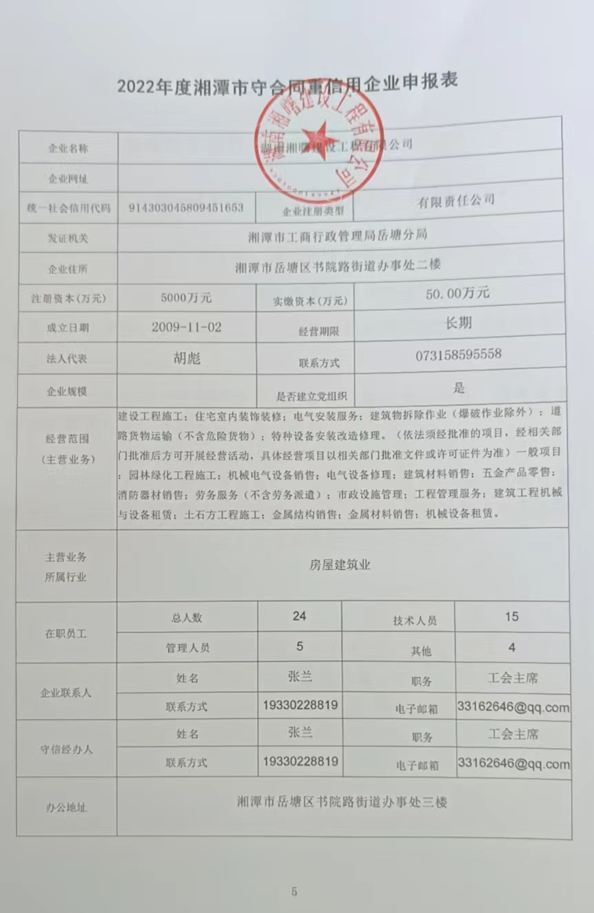 本企業(yè)根據(jù)《湘潭市守合同重信用企業(yè)申報規(guī)定》等編制 2022 年度企業(yè)信用報告書,并保證本報告書內容真實、準確、完整。