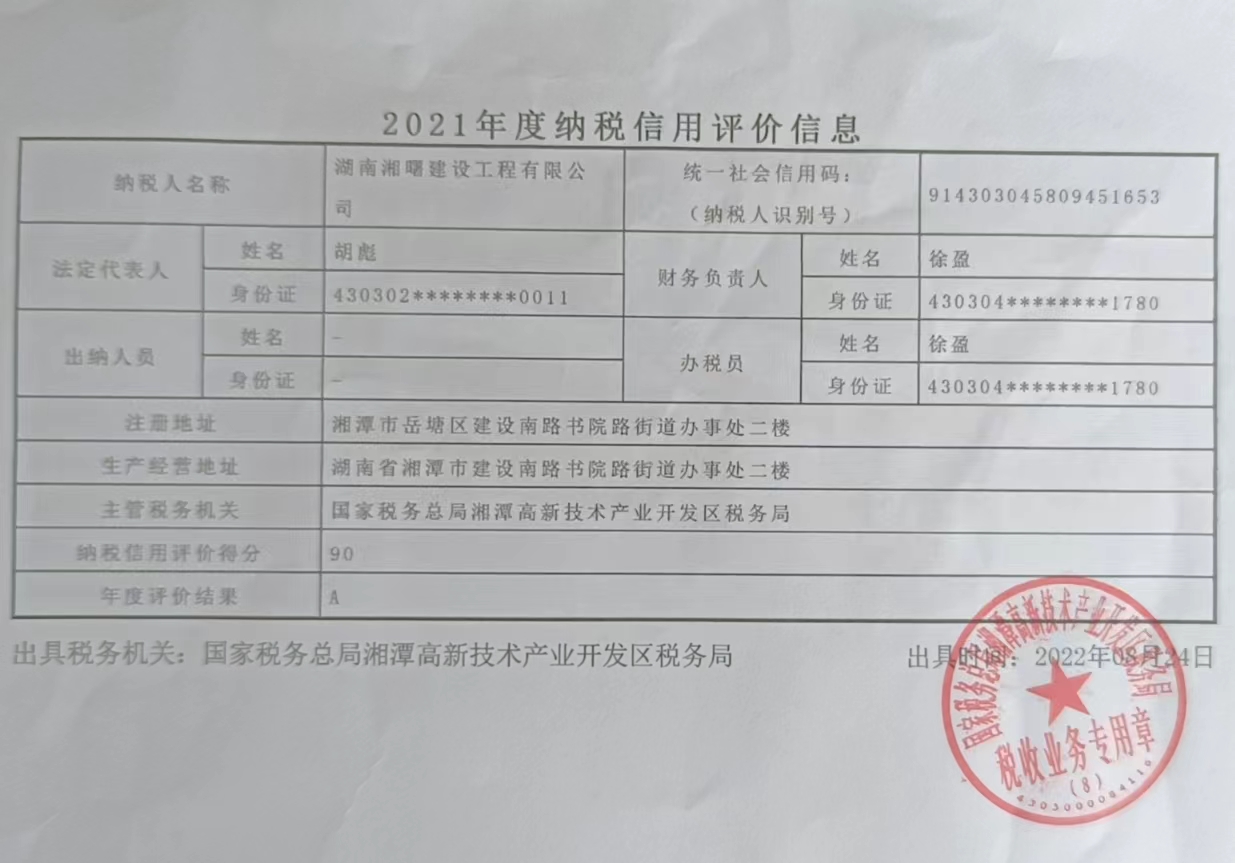 企業(yè)納稅信用等級報告: