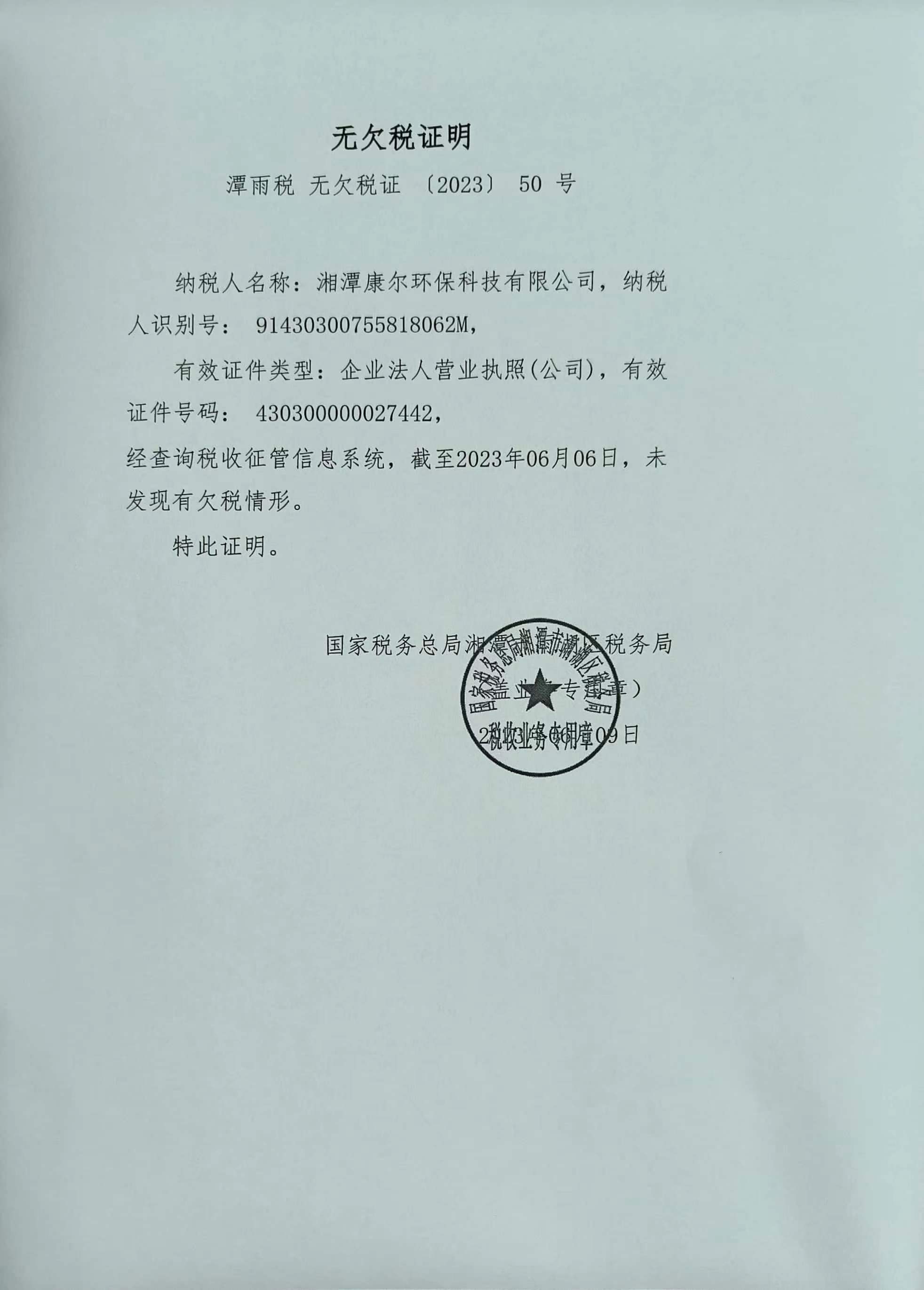 企業(yè)納稅信用等級報告: